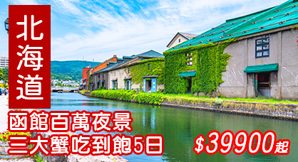 北海道函館百萬夜景+三大蟹和牛涮涮鍋水酒無限暢飲.溫泉五日