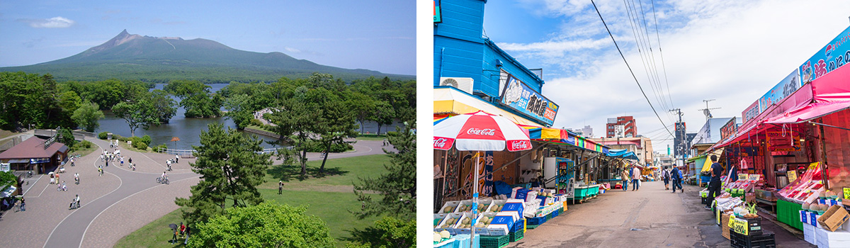 【函館朝市】來到北海道就不能錯過這裡盛產的各式海鮮,函館朝市位於JR函館站西口不遠處,市場一帶集中了大小400多家水產店,形成了一個獨據特色的大型市場。營業時間一般從上午8:00營業至中午1:00左右,市場裏嘈嘈嚷嚷,叫賣聲不絕於耳,運貨車和購物客令狹窄的通道顯得熱鬧擁擠,充滿市井氣息。