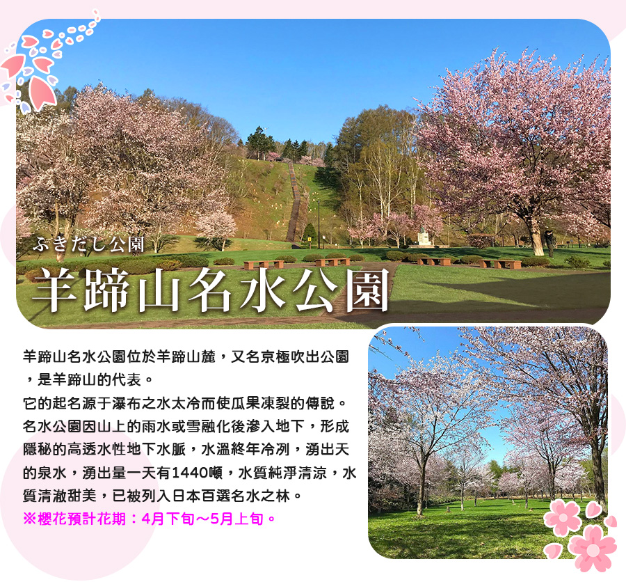 ※櫻花預計花期:4月下旬~5月上旬。